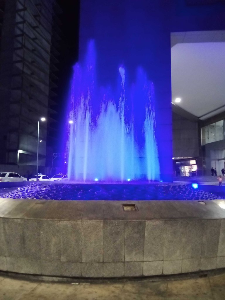 Today, since I left late, I decided to take a night walk, the same five kilometers that I walk every three days. Now I'm on vacation and it's a great opportunity to do more exercises. The heat is still scorching but at night the atmosphere is a little cooler. My first goal, to weigh 90 kg. My main goal is to weigh 75 kg. I leave you a photo of a fountain at the entrance of a shopping center near my house.