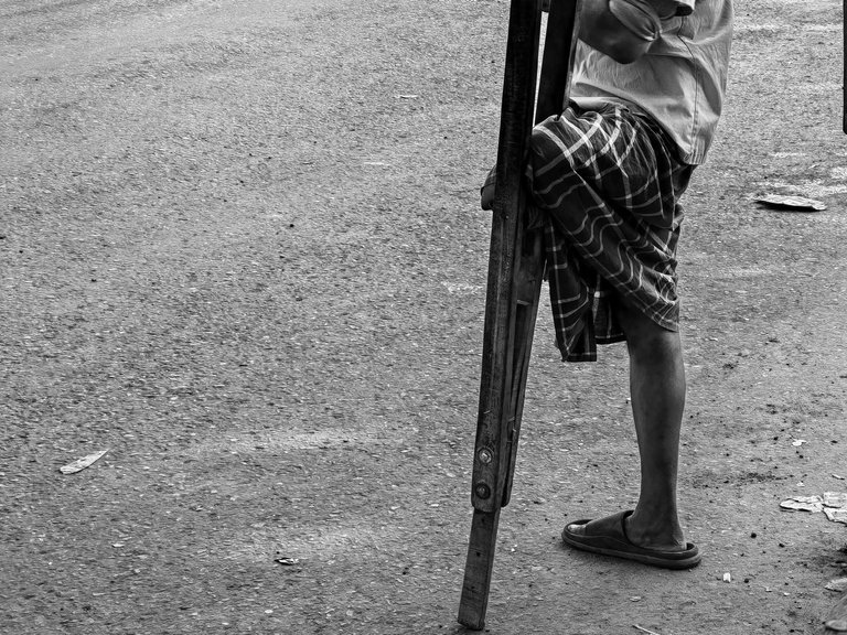 In the morning a bagger in one arm was bagging for his daily food. It's hard to earn money in this era and I don't know how they survive. Even he could not move and stayed in the same place.