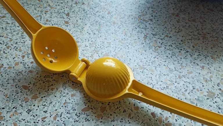 It's a lime and lemon squeezer designed for small fruits (pictures 1 and 2). I love all the little things and details. And today I used it by simply cutting the large lemon I had into eighths and truly celebrated the squeezing process. It squirts a little. But that was just a sign that I hadn't squeezed it slowly enough.