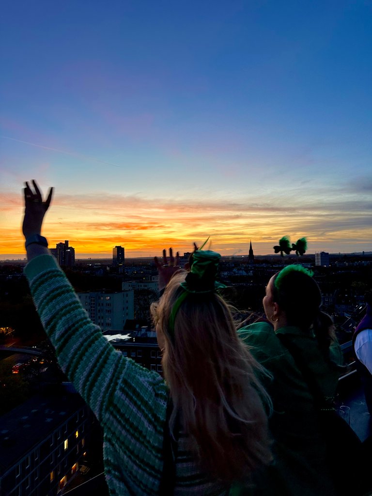 Leider hat ihr das Kölsch nicht gut geschmeckt.. Zitat: „Altbier schmeckt mir besser.“ Naja, nachdem mein Kölner Herz diese Beleidigung verkraftet hatte, sind wir dann auch endlich auf die Party gegangen. Dort hatten wir einen wunderschönen Ausblick auf ganz Köln. @chrislybear war ein Super-Saiyajin und somit ein regelrechter Männermagnet auf der Party. Meine Mitbewohnerin und ich waren Kobold und Glücksklee, das war auch ziemlich cool. Wir haben zwar nicht am laufenden Band high-fives kassiert, aber cool sahen wir trotzdem aus 🤪 wir haben zwischendurch das Tanzbein schwingen lassen und man muss schon sagen, der DJ hat echt einen super Mix aus Karnevalssongs und anderen Bangern rausgehauen. Der ein oder andere Pornstarmartini wurde getrunken, das ein oder andere Kölsch vernichtet und der ein oder andere Flimm (Waldmeisterlikör) gekippt. Alles in allem ein erfolgreicher Tag. Einzig blöd war die Heimreise, meine Mitbewohnerin und ich wurden auf dem Weg zurück nach Münster in Hamm rausgeschmissen, wo wir dann eine Stunde in der Kälte rumstanden. Aber gut, et kütt wie et kütt und et hätt noch immer jot jejange. Bis morgen ihr Lieben - Änna 🫶🏼