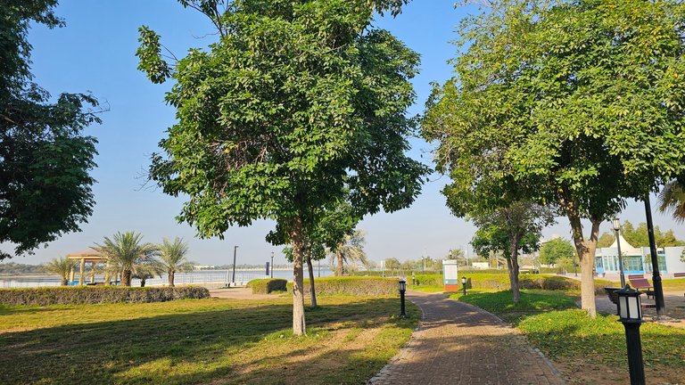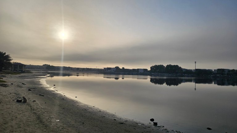 I switched walking on the sandy beach and the bricked pathways of the park. I don't know if I liked that there was no particular jogging path, or not. But yeah, this is nice, for a change.