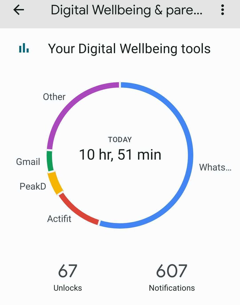 Before going into the bedroom, I checked my mobile activities. Today, I have a good analyzer in my Android that gives me analysis of mobile usage. Most of the time, I used WhatsApp because it is Sunday and I had conversations with many friends that are away from me. Moreover, I also used the #Actifit and Peakd application on the second and third points. You can view your daily mobile usage in the setting of your android phone. Open the android setting, you need to click on Digital Wellbeing tools that will show your mobile activities graphically. Here are my digital mobile activities.