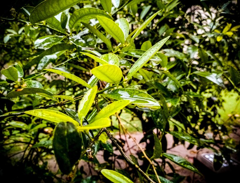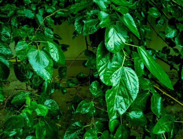 All leaves wet with rainy water