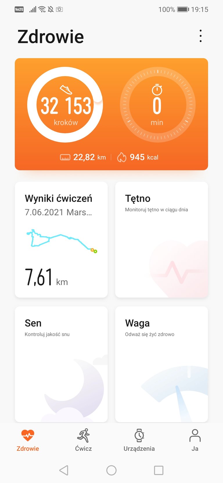 Aplikacja Huawei Health pokazuje, że zrobiłem nieco ponad 32150 kroków, zrobiłem prawie 23 km i spaliłem ponad 900 kalorii. Jestem zmęczony, jeszcze po robocie poszedłem do Kauflanda po zakupy. Mam dość na dziś. Nogi mi wchodzą do...