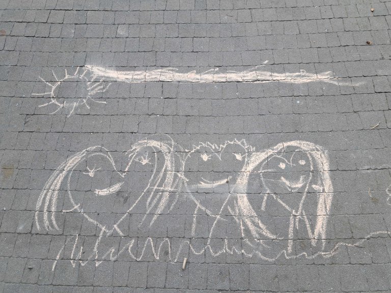 Here we took a family photo below you can see our family portrait drawn with chalk by Raya