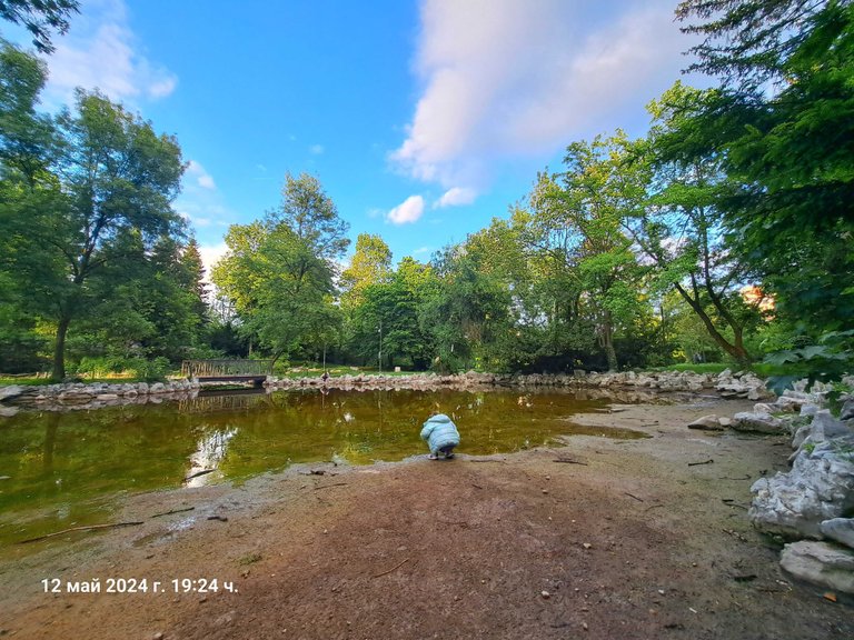 After we got home, but we got bored, we decided to go to the park for a walk, the weather was nice, in places there were big puddles from the heavy rain, but that didn't stop us