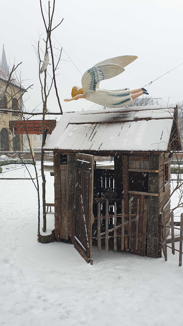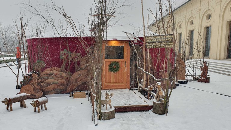 Vevnitř ale bylo útulně. Pár vyřezávaných mechanických minibetlémů a jeden velkej.