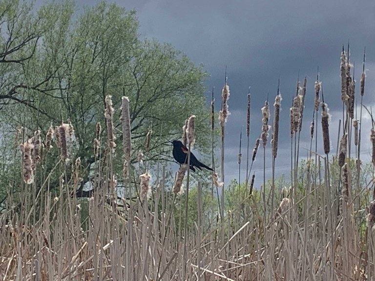 Blackbird in the marsh. So many wonderful songbirds on my walk in the wetlands today. Birds and bees are doing their thing. Was happy to go over my 10,000 step goal again.