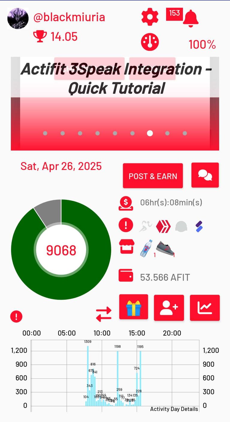 Mi informe de Actifit: abril 26 2025. bajamos el conteo este día.