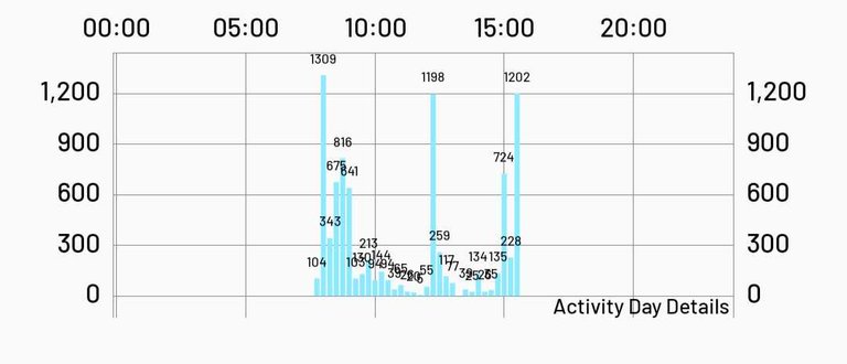 Les comparto más a detalle mi gráfica de registro de pasos y de tiempo en todo el día.