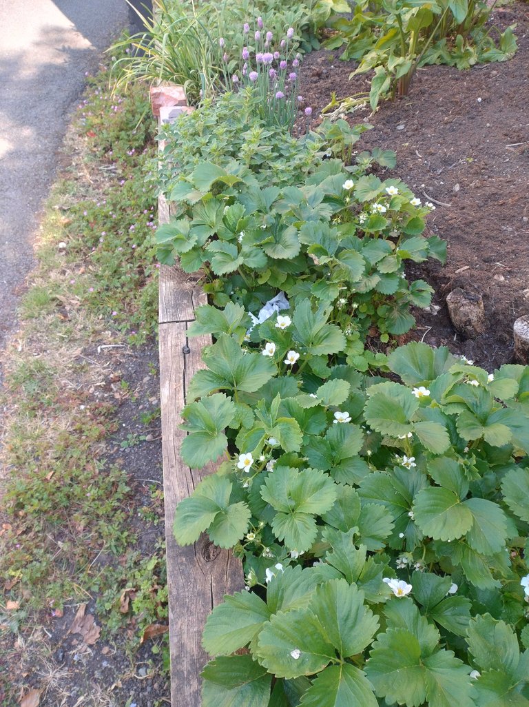 Strangely, actifit has chosen to change the orientation of this picture. Never mind, the main thing is the strawberries are doing marvellously, there are already lots of berries and many more flowers.