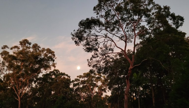 Cooked BBQ under an orange sky with the moon rising - looks like ice and fire says my wife