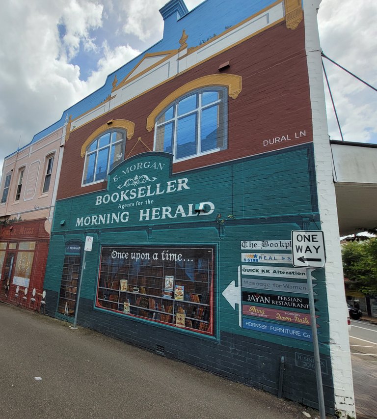 Found this lane with the building sides painted - E Morgan Bookseller