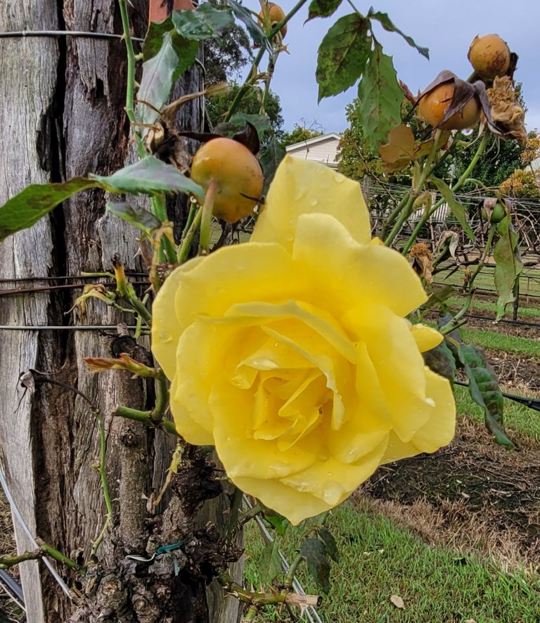 Turned to trimming dog rose on the pergola - until rain stopped play