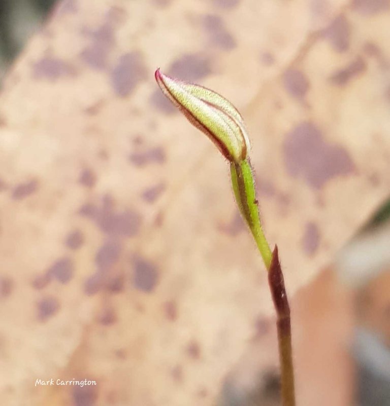 Checked on another flying duck orchid site. Something has been scraping away - last time there were several leaves. Now just one and not yet turned green.
