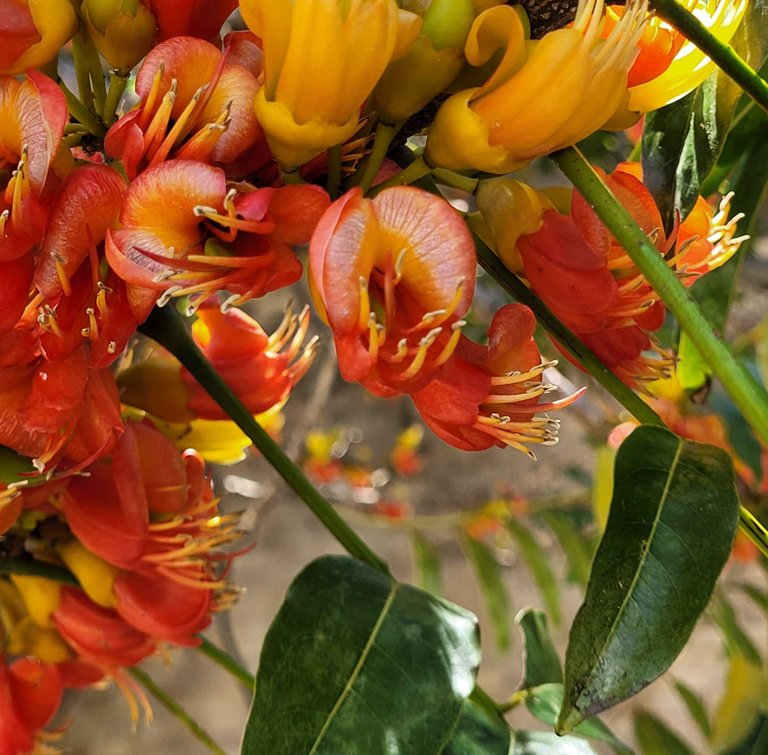 Drove down there in a gap in her meeting schedule. Found this tree in the garden - flowers look like birds and the birds love the tree