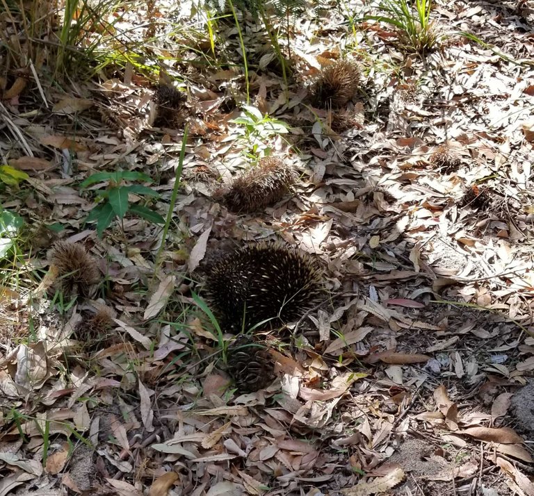 Surprised an echidna. It burrowed into the sand to disguise like a banksia seed pod on the ground