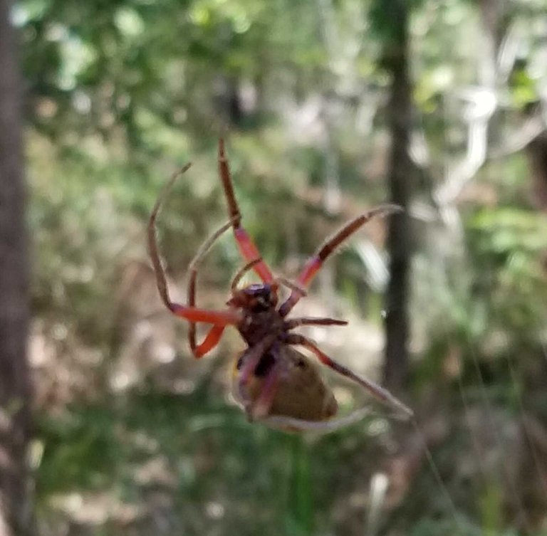 This was a challenging photo. The spider is about the size of a thumb nail and was spinning a web - on the move. This is as still as I could get