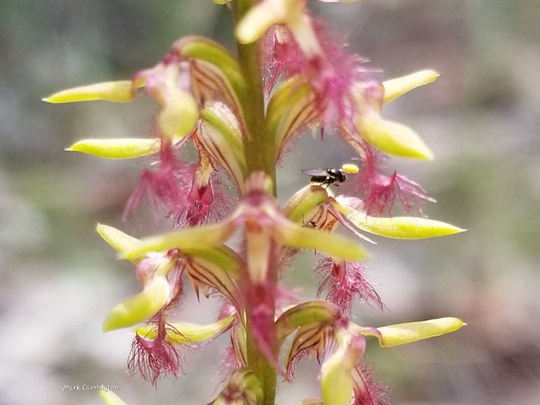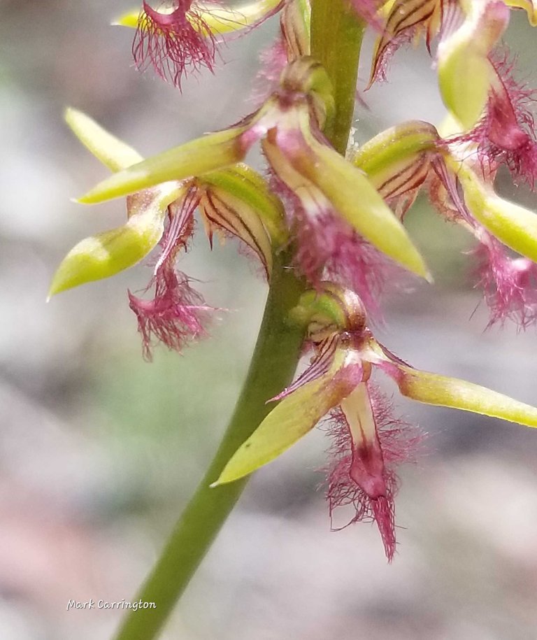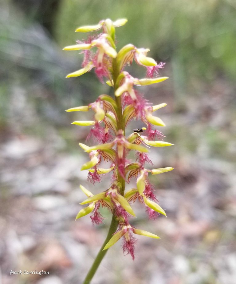 Got on the bike to ride to a local trail looking for midge orchids. A friendly pile of rocks showed me the first one - corunatylis fimbriatus. First time open this year in a known spot