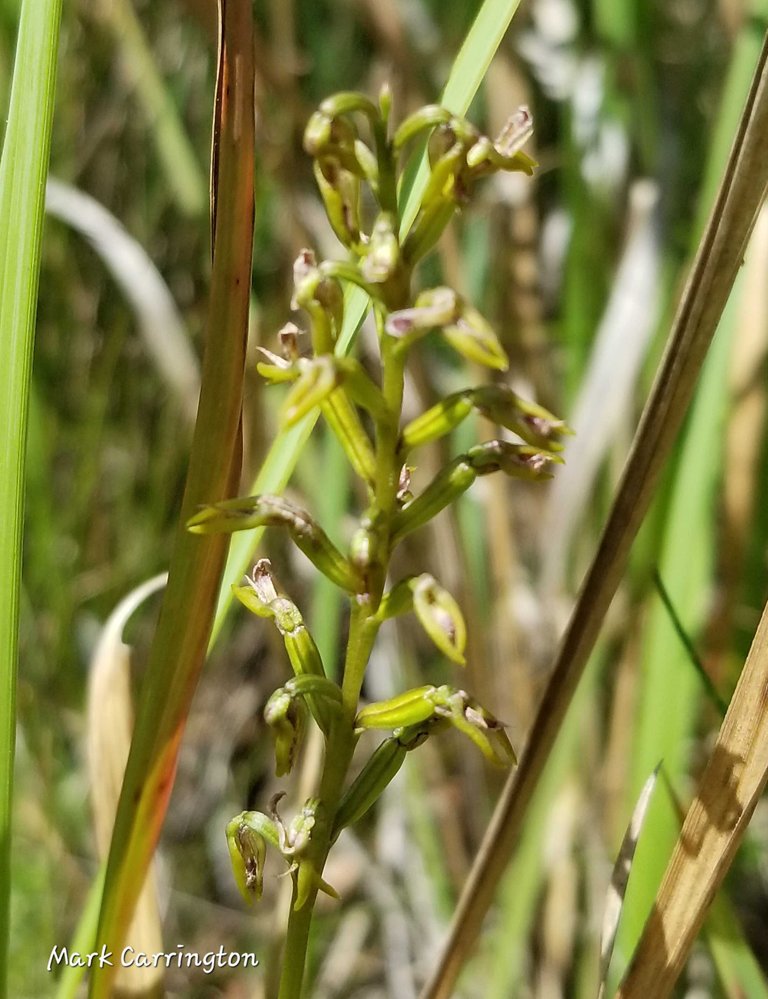Orchid spotter alert to things that have the right structure - close study shows spike has leaves and adjacent plants are grasses - not an orchid