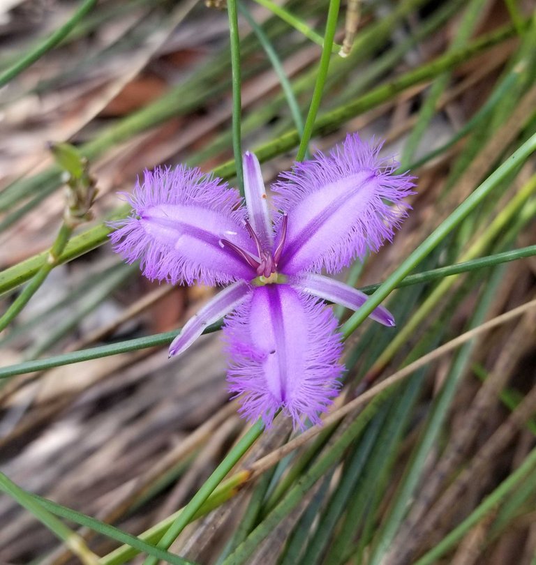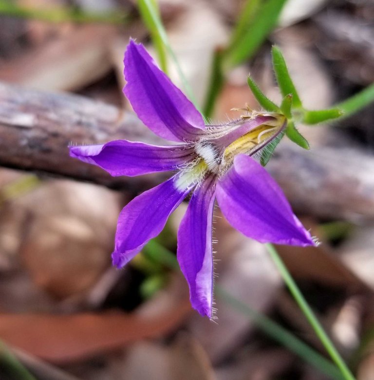 Mission is midge orchids in the grassy sections before the bush - Berowra Valley NP - first flower sets the theme - purple - purple fan flower