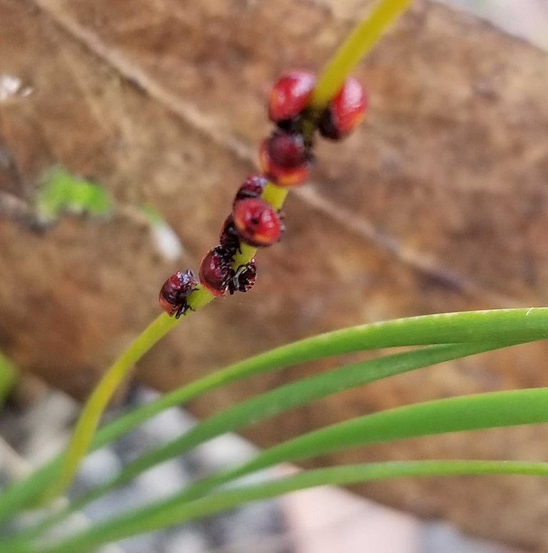 This is what they look like when the seed capsule starts to form with the remnants of the flower above