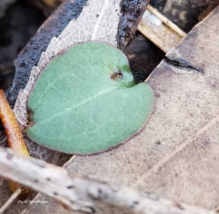 Leaf shape is different to the heart shaped leaves seen the other side - guessing helmet orchid - a very specific one