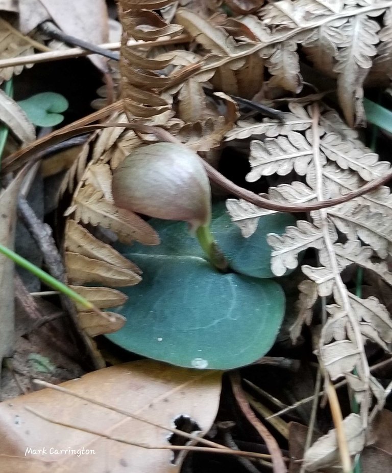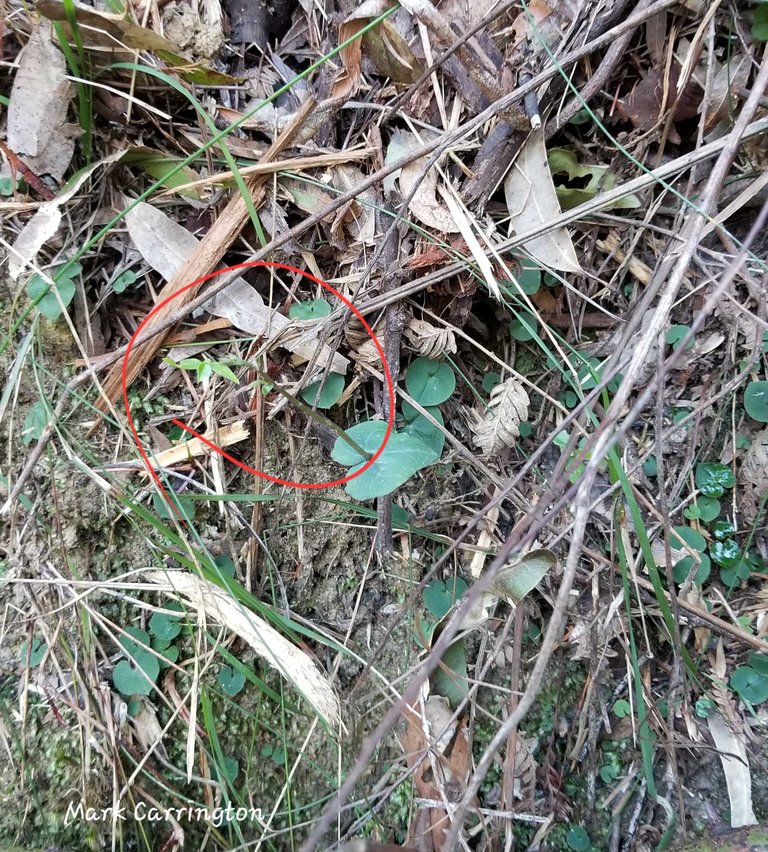 A few orchids escaped the track work - acianthus orchids - one pushing out a flower spike