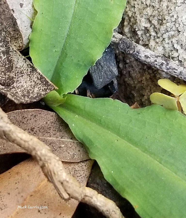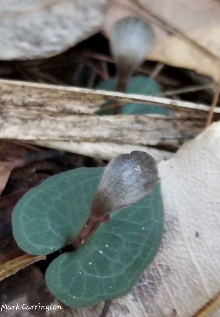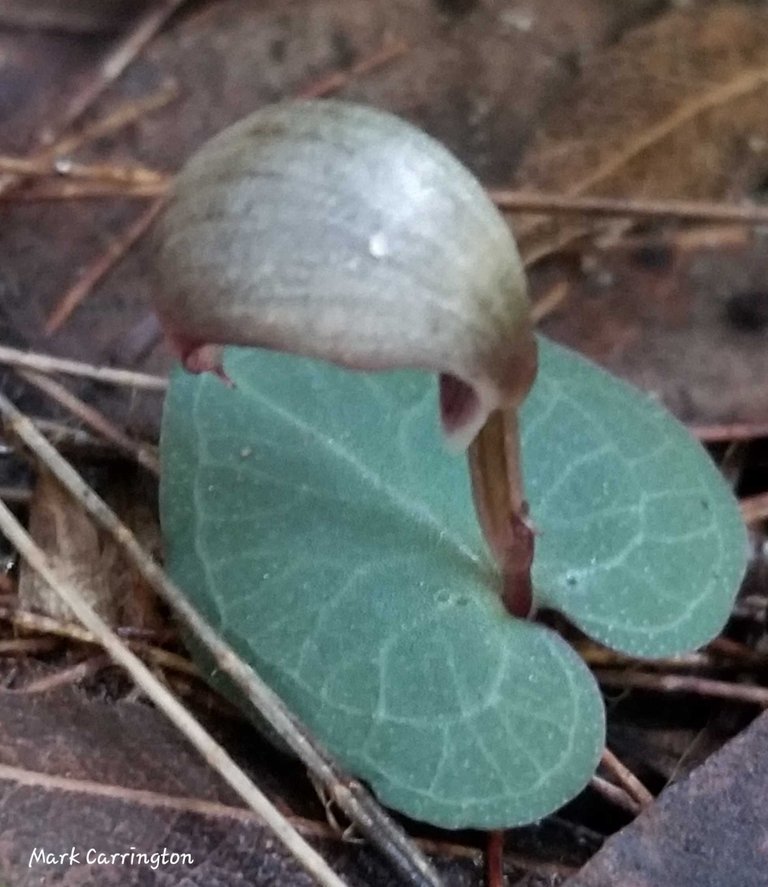 Opposite is a colony of chiloglottis orchids - a bud is just starting