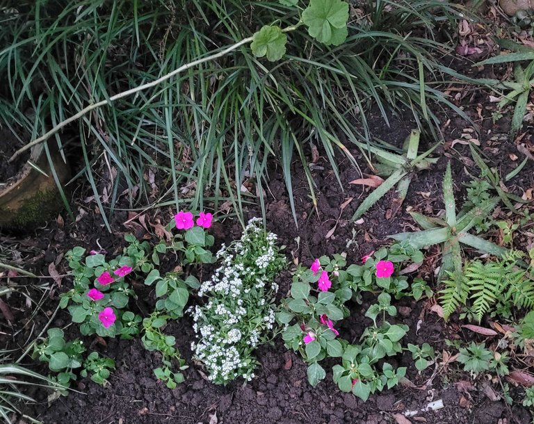 My wife came home from nursery with plants for the front flowers beds. Pla Ted those out after moving a fee things - aloe to the right and geranium in the pot