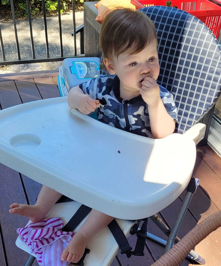 He did like crawling around on the deck exploring - eating leaves