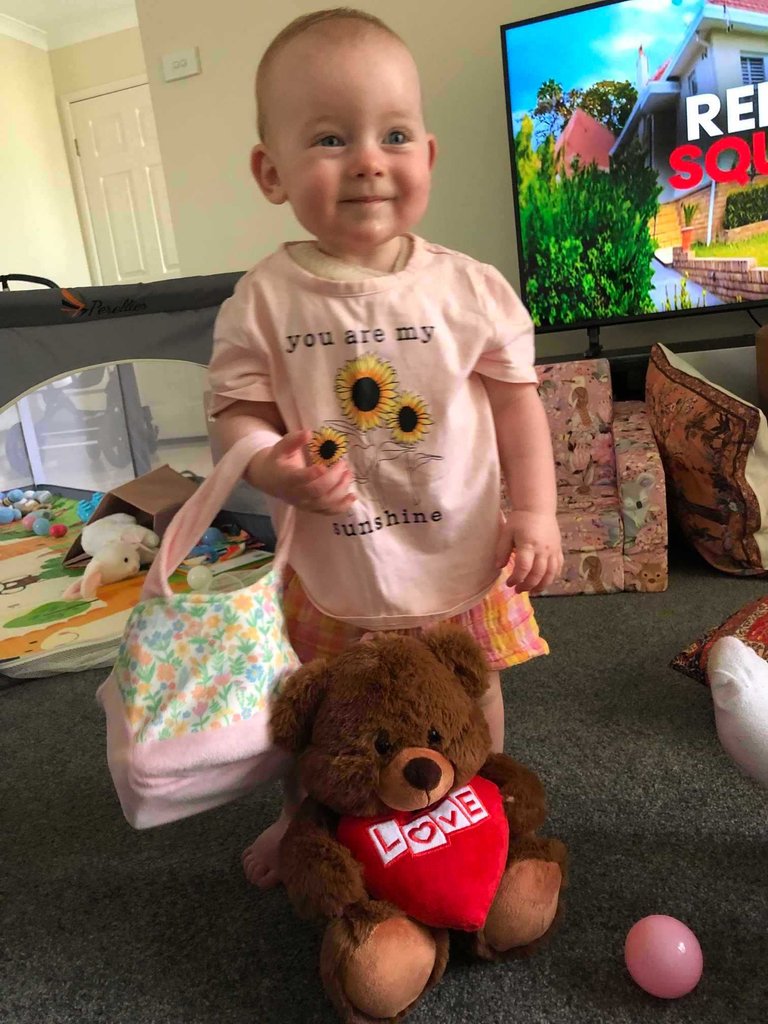 My son did send a photo of the young lady standing tall and not the worse for wear and showing off new teddy bear from her other granddad