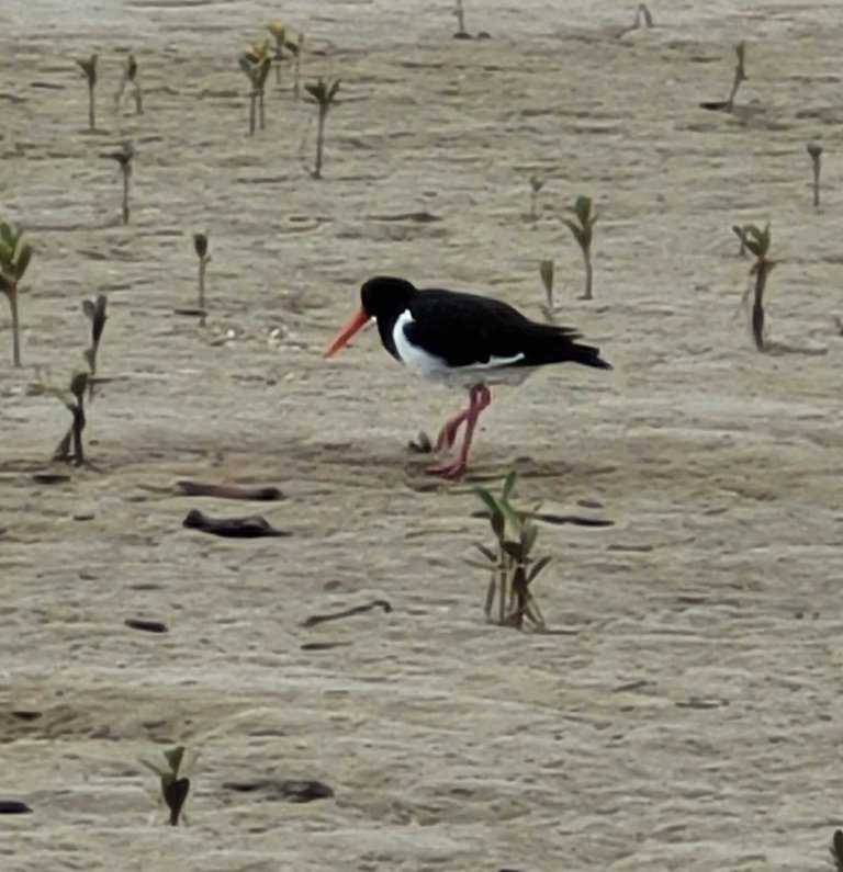 With water so low the sand close to the water was firm for walking - note the mangroves poking their heads up