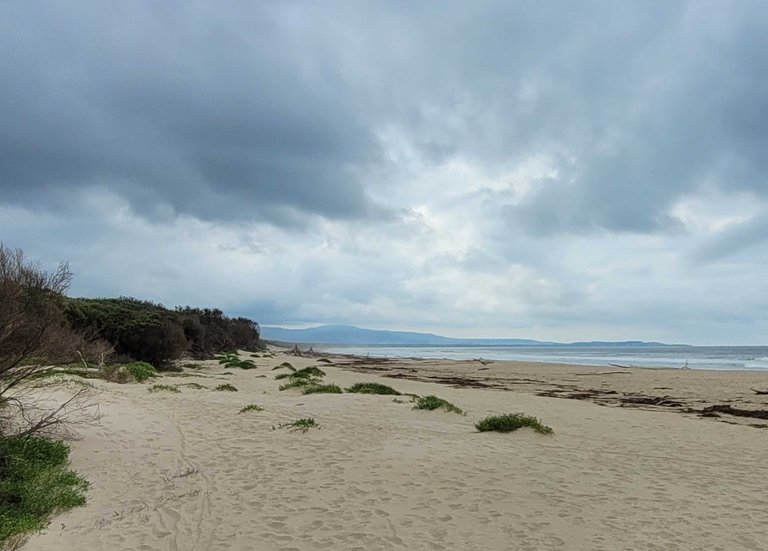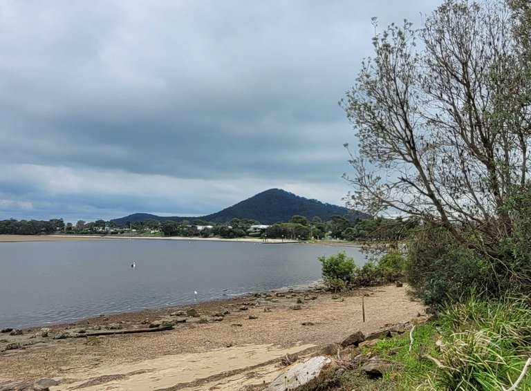 Got on the bike - looked at the sky - the rain was on the mountains. So I rode down to the river mouth to walk there. Quite a few banksia flowers open