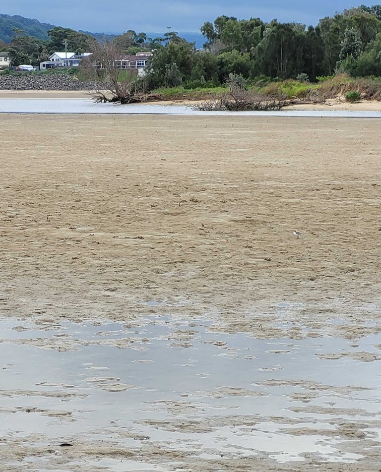 Tide was really low - the island is no longer an island. View back to Coolangatta Mountain
