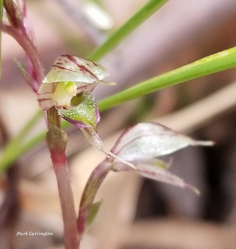 Pixie caps orchid with pollinator above. For context the flow is the size of two matcheads - the fly way smaller