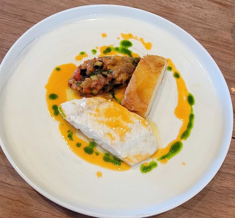 Main course was baked snapper with pomme anna and a summer relish. Forgot photo of the dessert. Lunch was good. Service was good. Got to say I could easily have made the whole meal wheat free