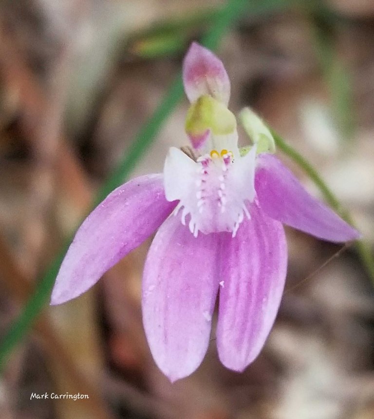 A little more pink on the labellum and a few yellow calli at the back - suggests caladenia hilmanii