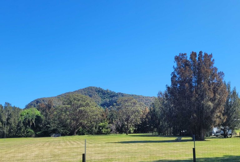 A clear blue sky day for the snap of Coolangatta Mountain - fed the chickens