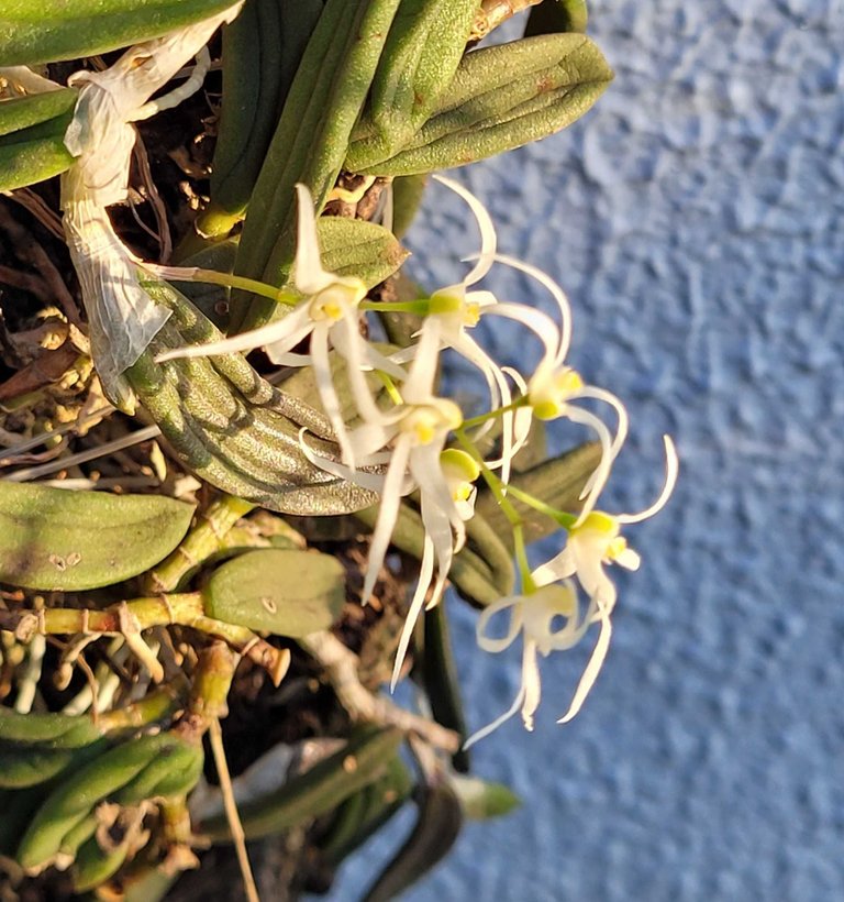 Dockrillia now flowering fully. Got the wrong camera to have good focus. The best bit is this did not flower last year - likes the new place