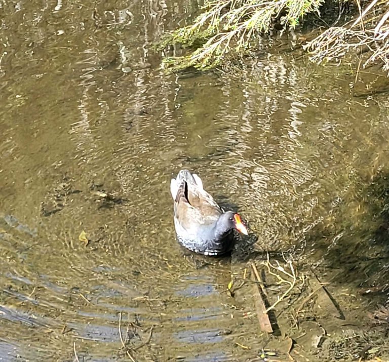 There is a pond next to the chicken shed. This moorhen was cruising - is different to the ones I normally see