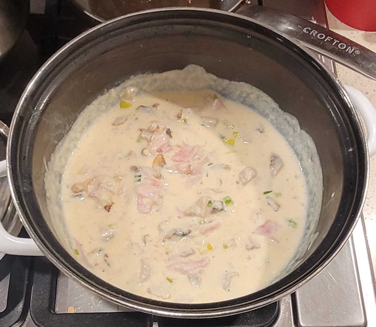 Dinner: An Alfredo type dish - chicken, ham, mushrooms and creamy pasta