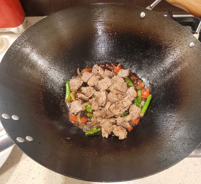 Add in the set aside beef and stir through