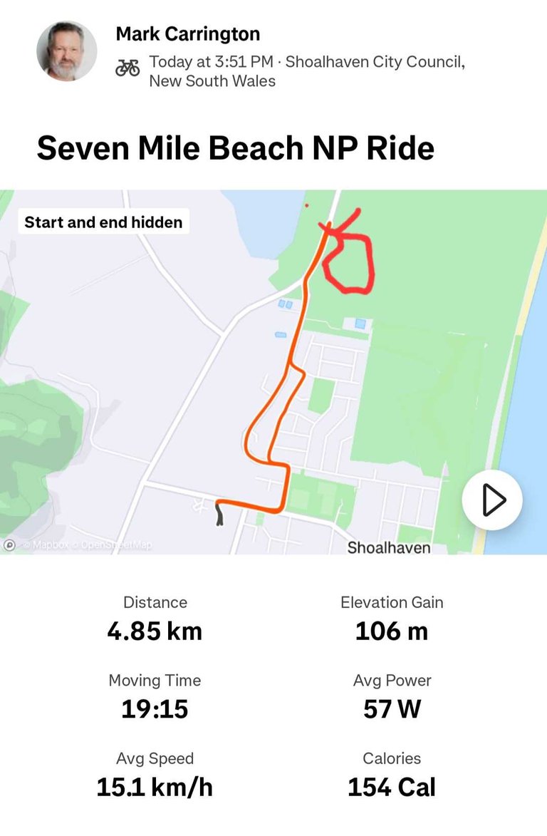 Loop walk done. Hot afternoon but comfortable in the bush. Did get some kms on the bike
