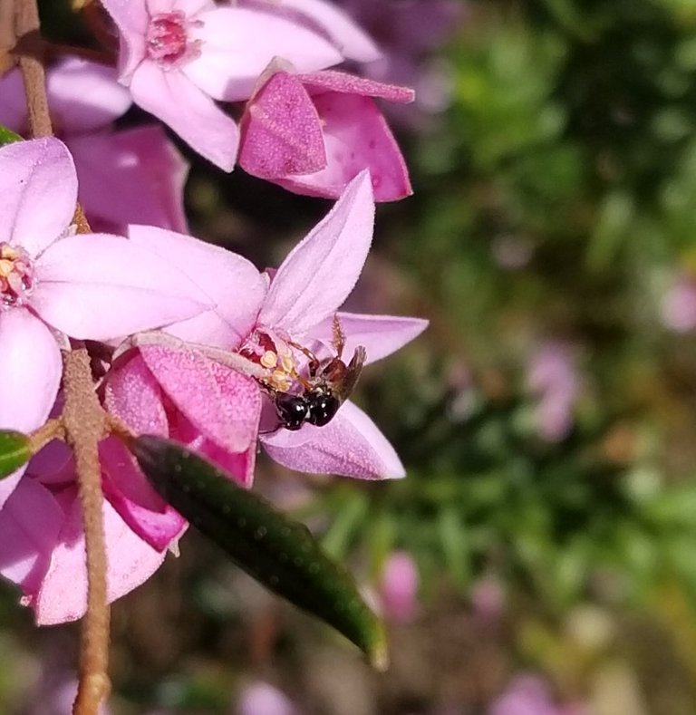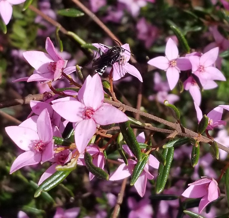 Waxflower. Somehow this was the one I chose to photograph - there is a pale creature almost matching flower colour. It scooted off - a spider