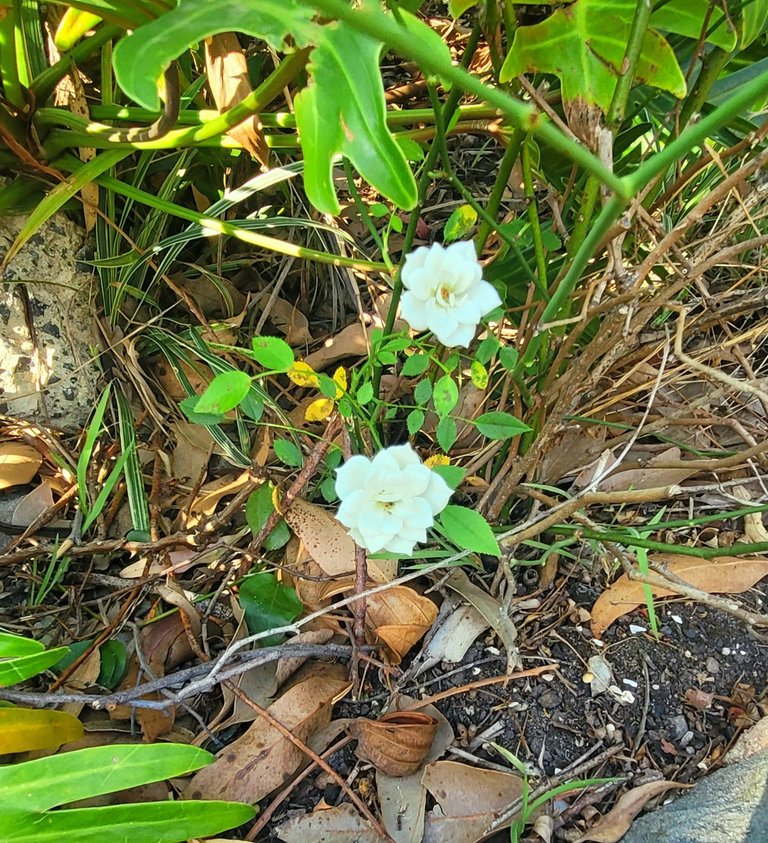 I went for my walk in a big loop to shops when he went - photos are a challenge - wrong phone. Tiny rose from our garden
