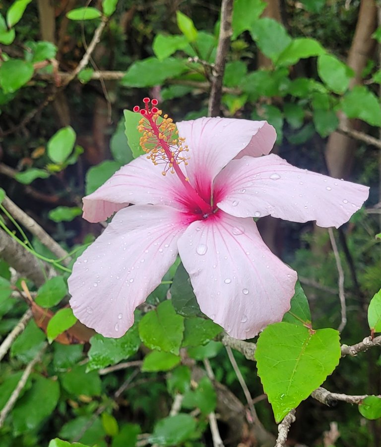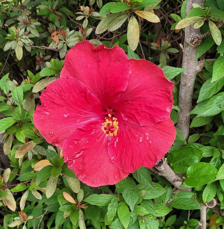 Back to raindrops and the 2nd hibiscus of the walk - red this time