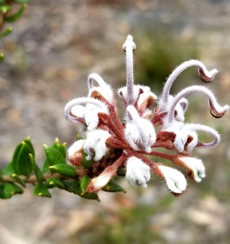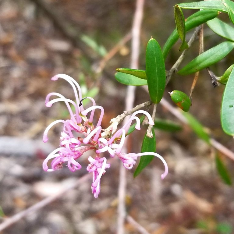 Pink spider grevillea on the Chase Trail - looking for midge orchids