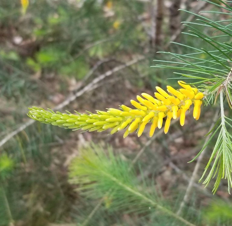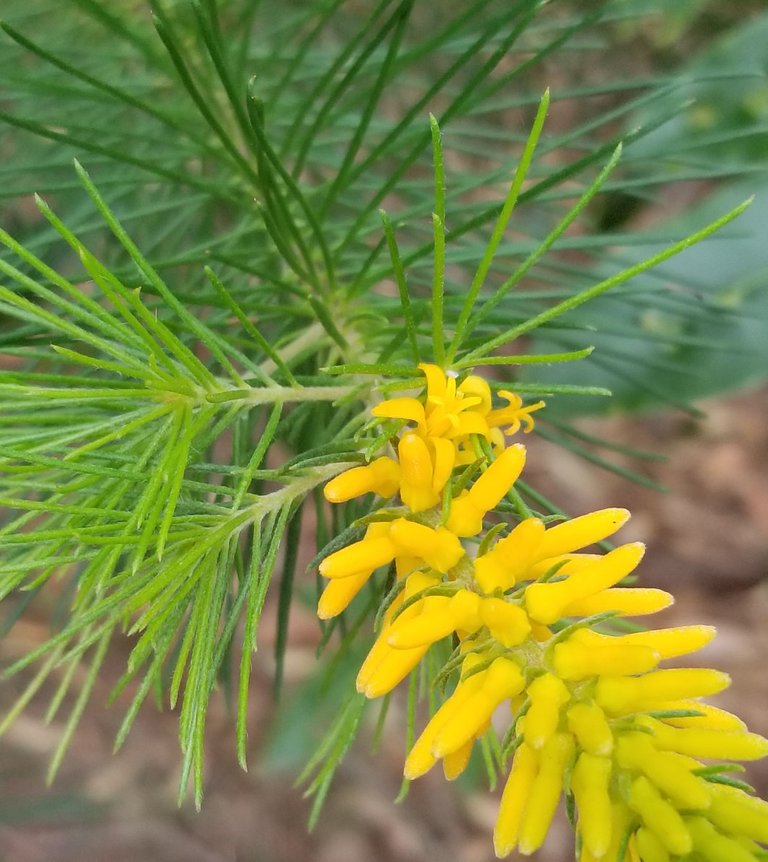 Pine-leafed geebung beginning show.