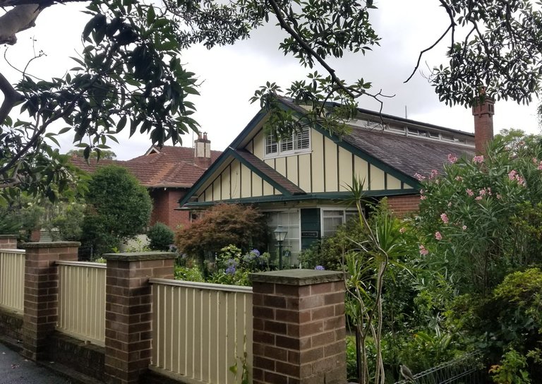 Walked a small cross street on the low side - a few old style houses still here. Single storey - no garage - Federation colours. Dropped the phone - flare may signal camera damage